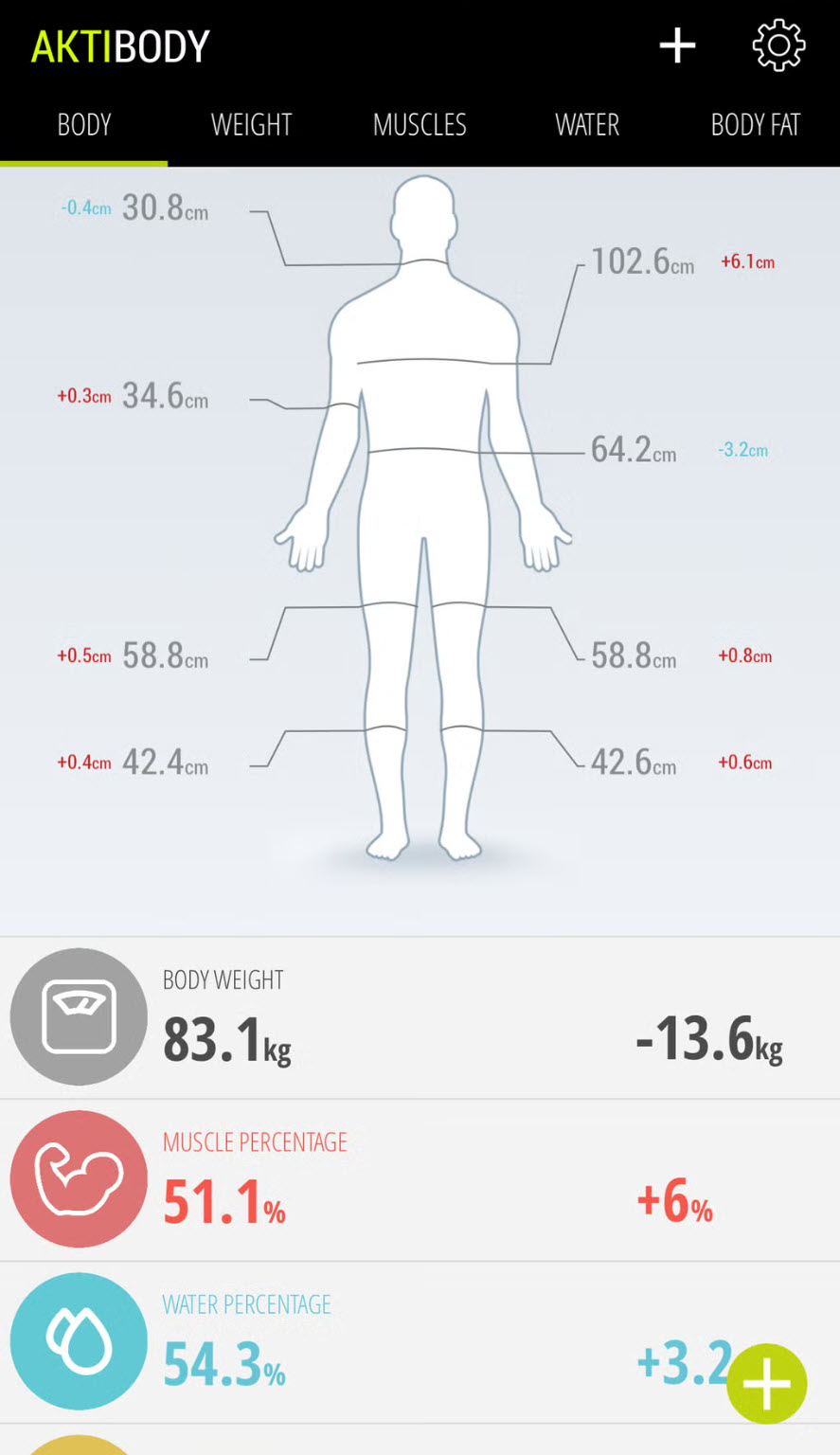 Nicht nur weniger Gewicht zählt. Mit aktiBody verfolgst du auch deine Muskelzuwächse. Perfekt für Bodybuilding oder Toning.